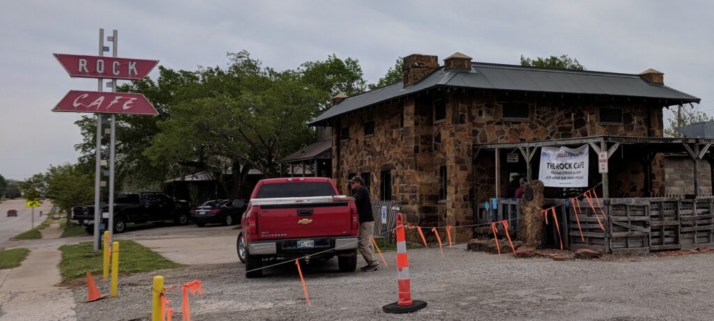 We have lunch at the Rock Café. The parking lot is roped off, but street parking is plentiful and marked by painted lines, so yay! (If this is the first of these posts you are reading, this is a reference to my previously mentioned citified preference for having a nice painted box to park in.)