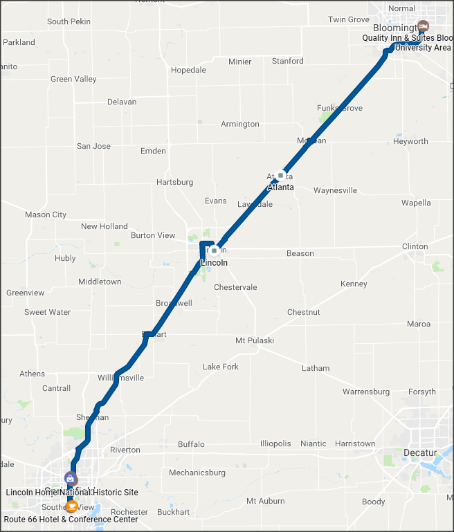 Monday, April 30, 2018, Bloomington to Springfield, Il.